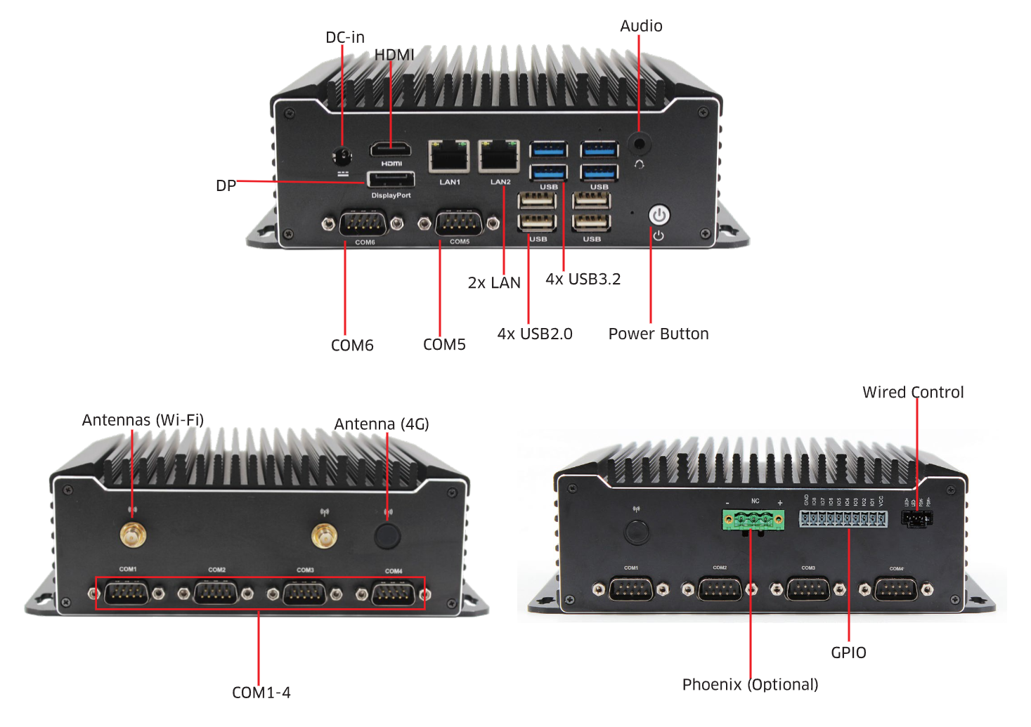 Power: 12V-35V DC input, Phoenix input optional