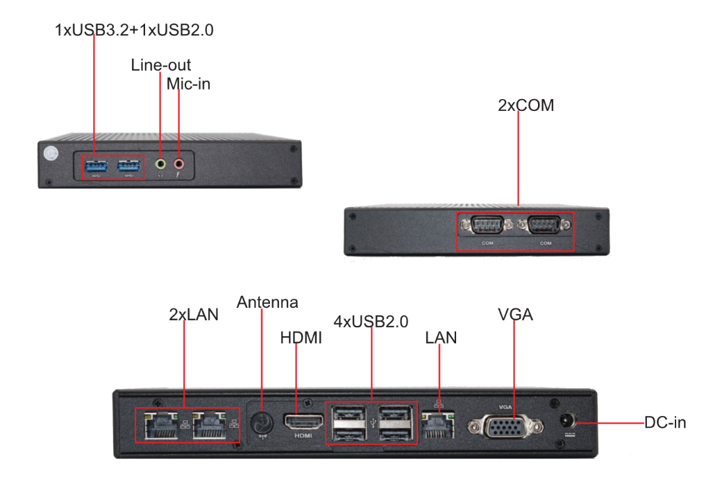 I/O Ports: 3xLAN, 2x COM, 1xUSB3.2, 5xUSB2.0.