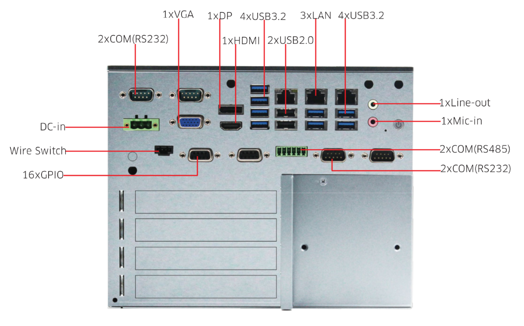 I/O Interface: 8x USB3.2, 1x USB3.2*Dongle Onboard, 4x USB2.0(2*header), 6x COM, 3xLAN,