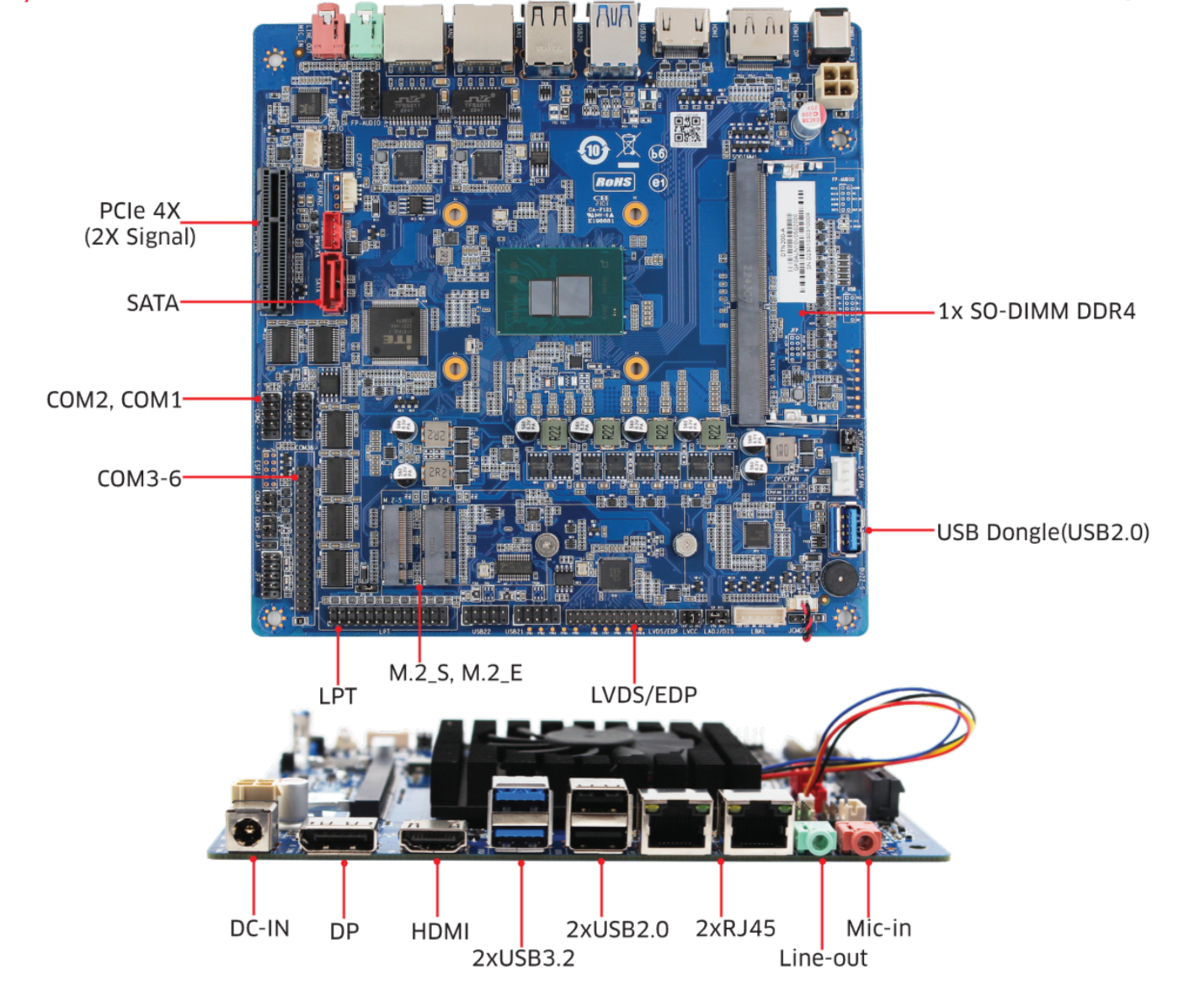 丰富接口与灵活扩展:主板提供多种I/O接口,包括HDMI2.0+DP+LVDS/EDP、6xCOM、2xUSB3.2+6xUSB2.0+1xUSB Dongle等,并支持M.2和PCIe 4X(2X Signal)扩展,为您的设备连接和扩展提供了充分的灵活性。